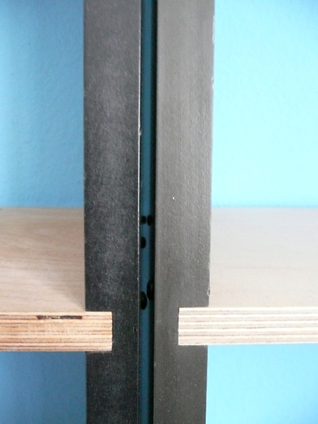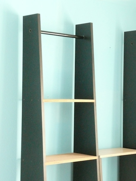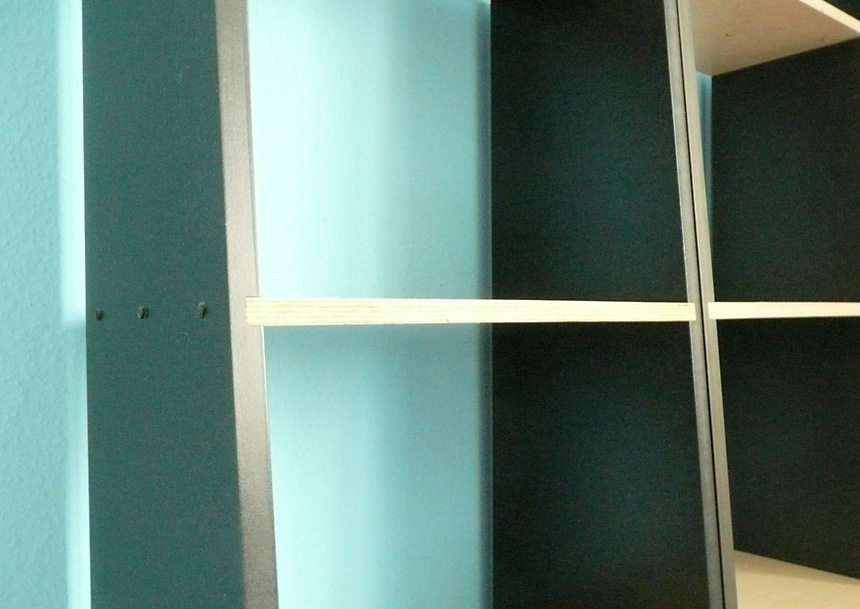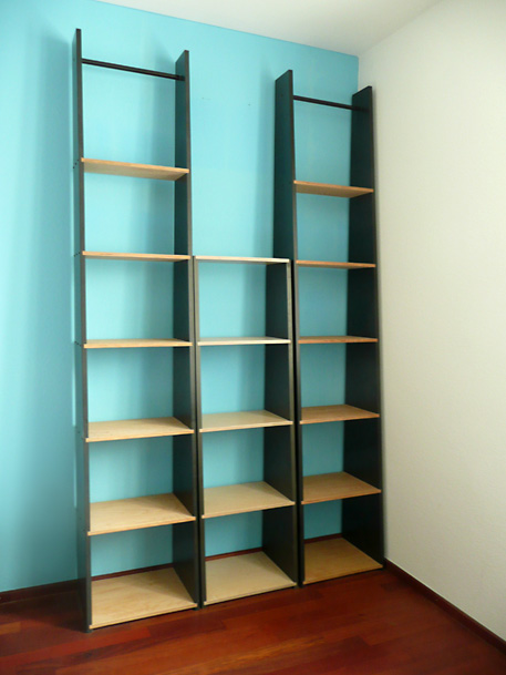 Birkensperrholz und MDF schwarz / 3-teilig / Elementbreite 0.43 m / Höhe 1.40 m bzw. 2.20 m / Tiefe 0.43 m (unten)
