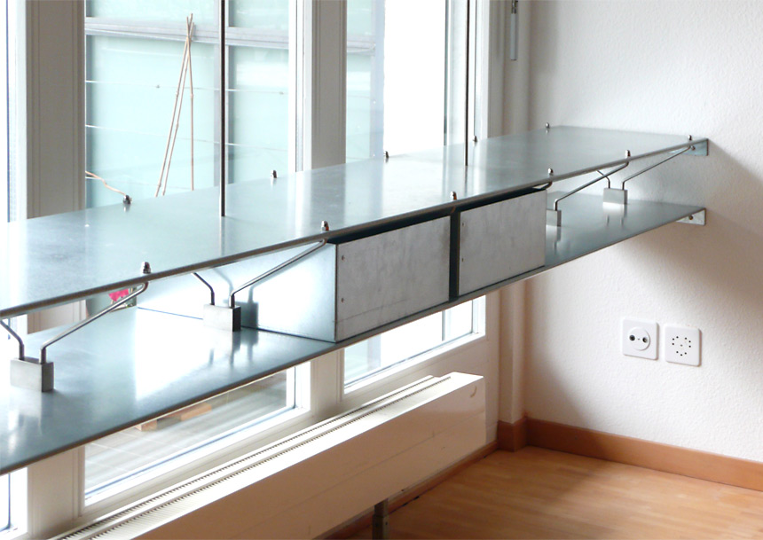 Länge 2.33 m / Breite 0.35 m / Tablare auf Höhe 0.60 m bzw. 0.75 m