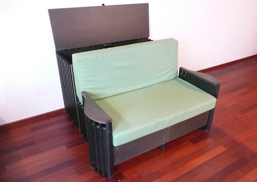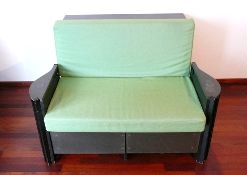 Das kompakte Sofa, auf welchem 2 Personen sitzen können, bietet nützliche Versorgungsmöglichkeiten für Duvets, Kissen, Decken, Wäsche und viele andere Dinge.