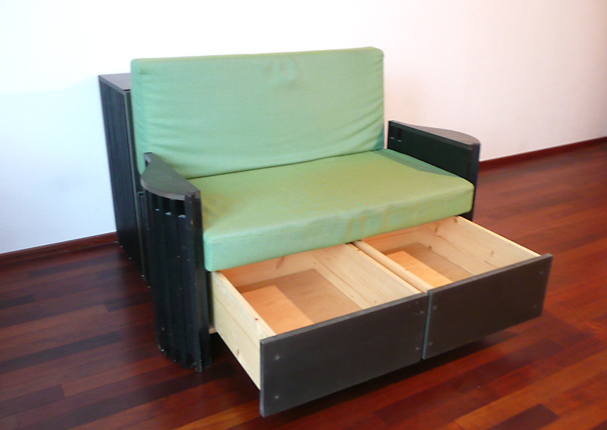 Kleines Sofa mit 2 Schubladen und Truhe